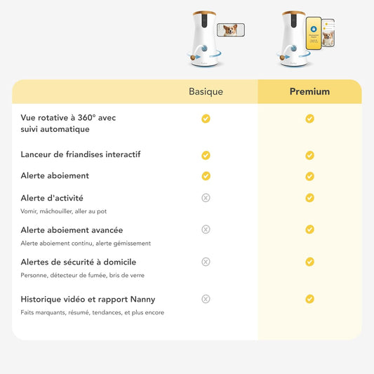 Caméra Pour Chien 360° - Pack Avec Alertes De Sécurité Maison [ABONNEMENT Premium]: Caméra HD Intelligente Avec App, Vision Nocturne, Suivi Auto, Lancer De Friandises, Alerte Aboiement Avancée